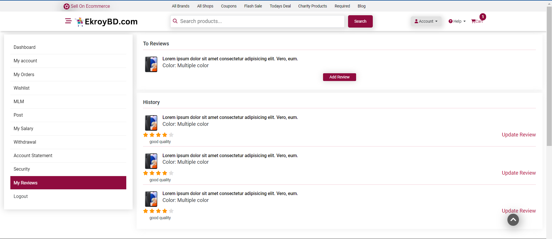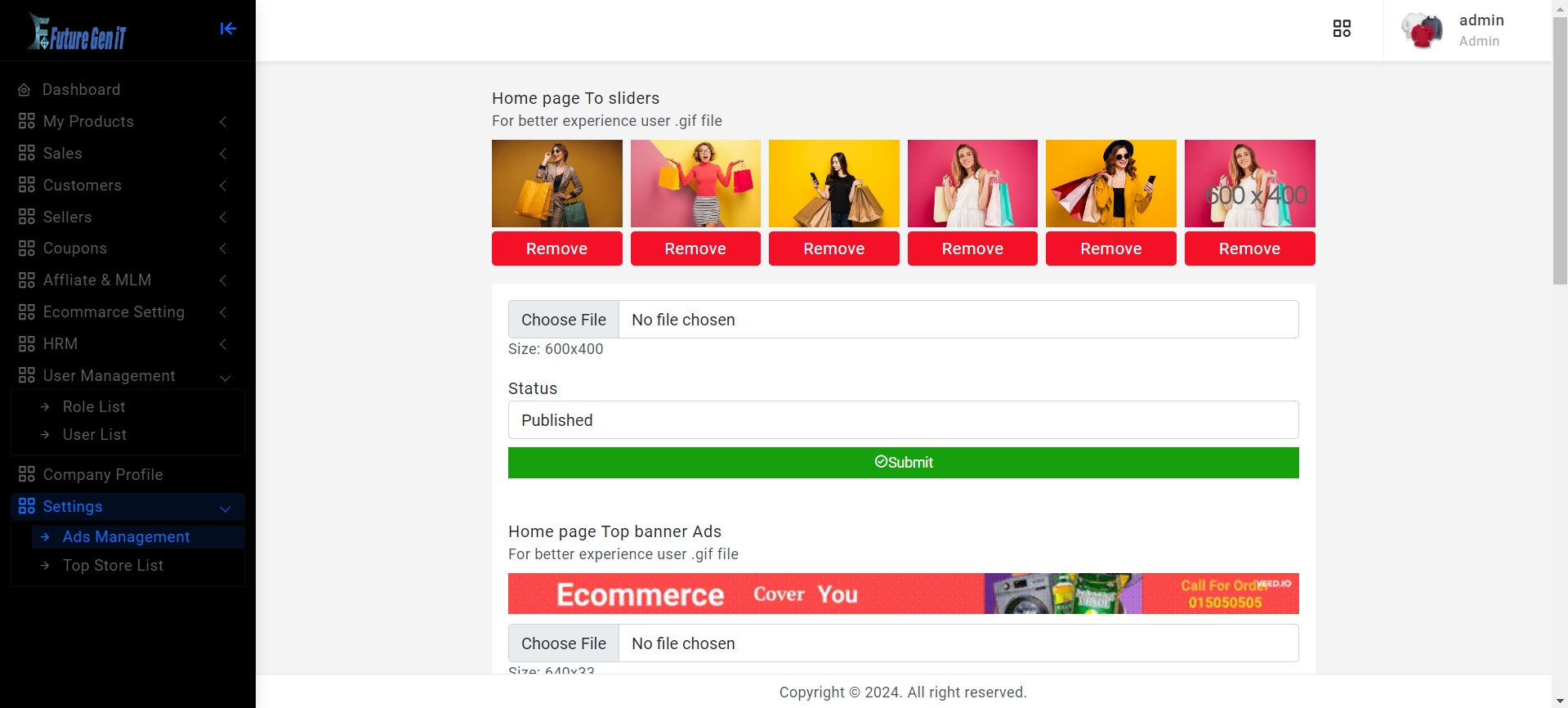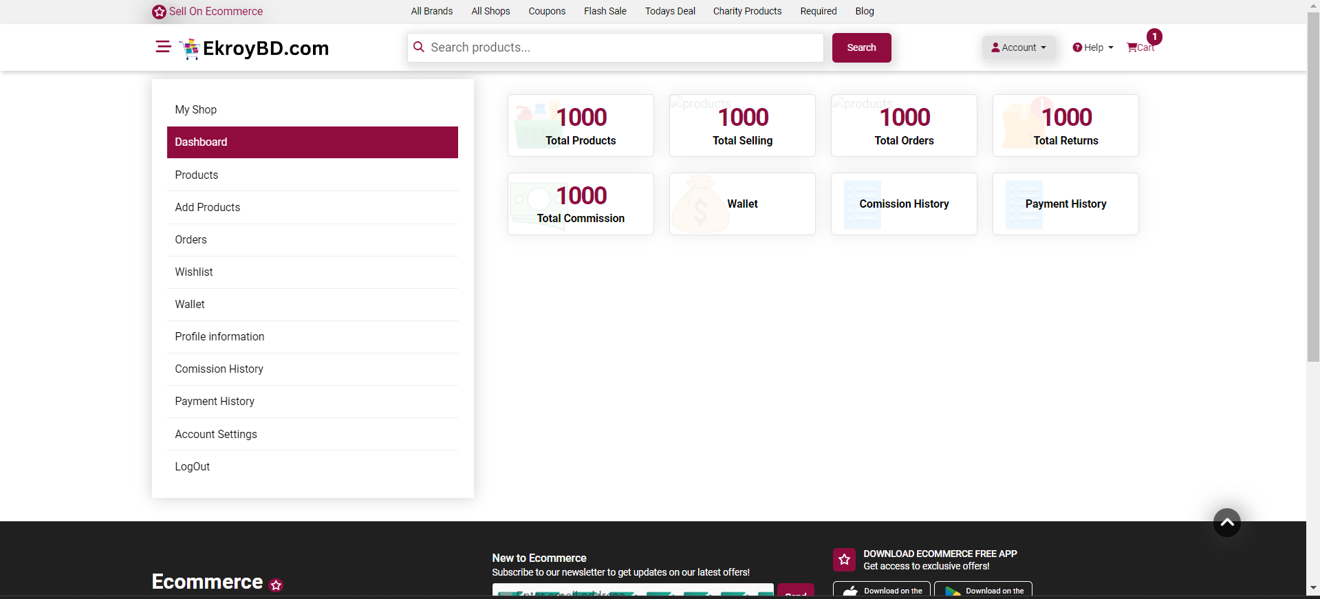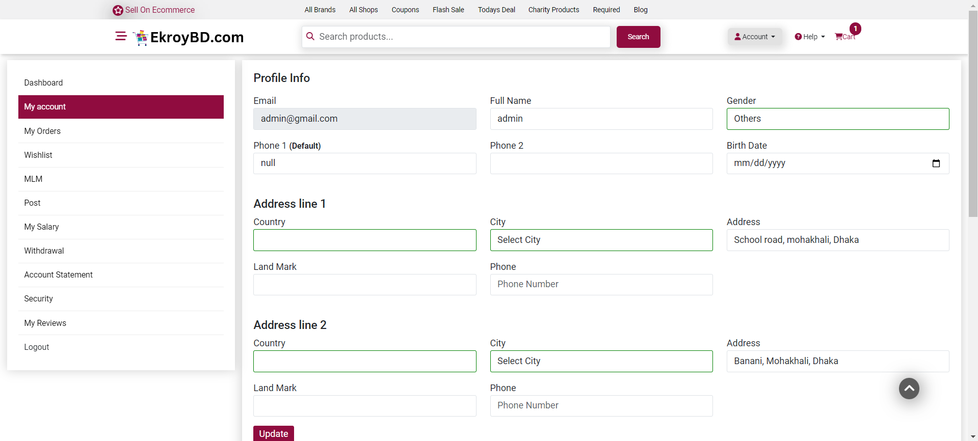 - Admin Panel: For site administrators to manage users, products, orders, and more.