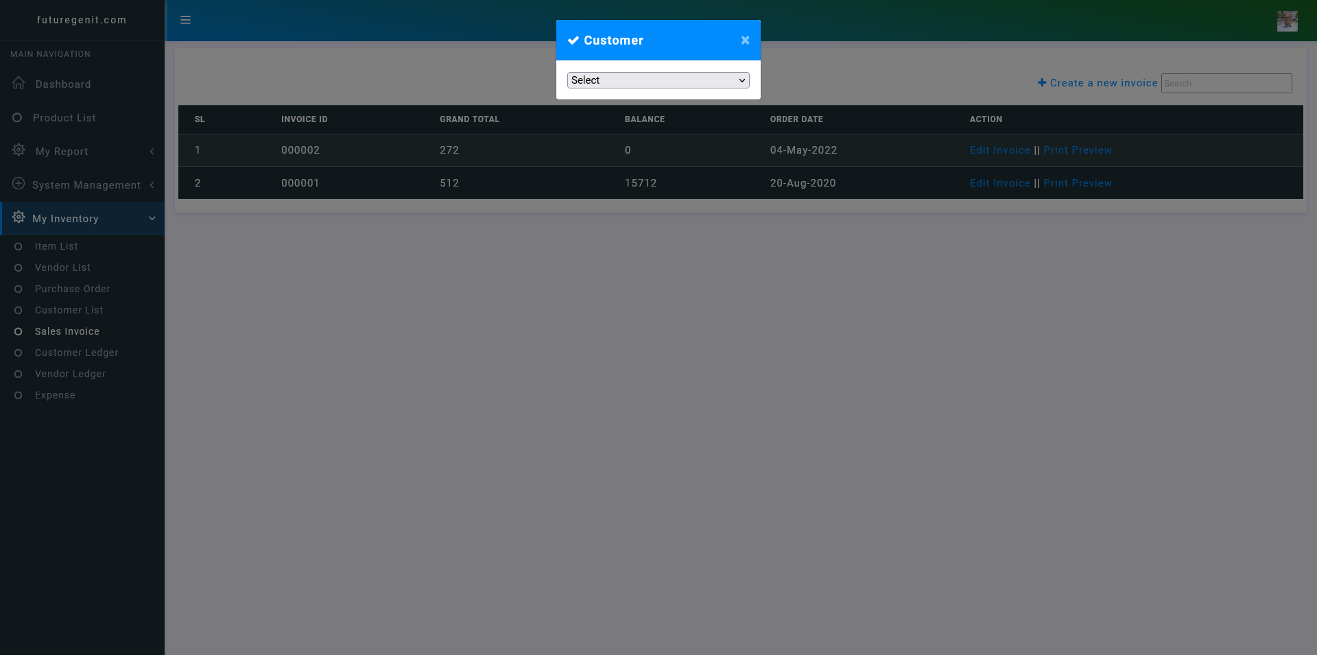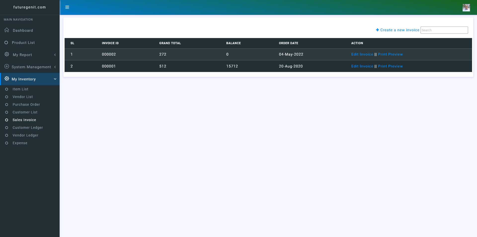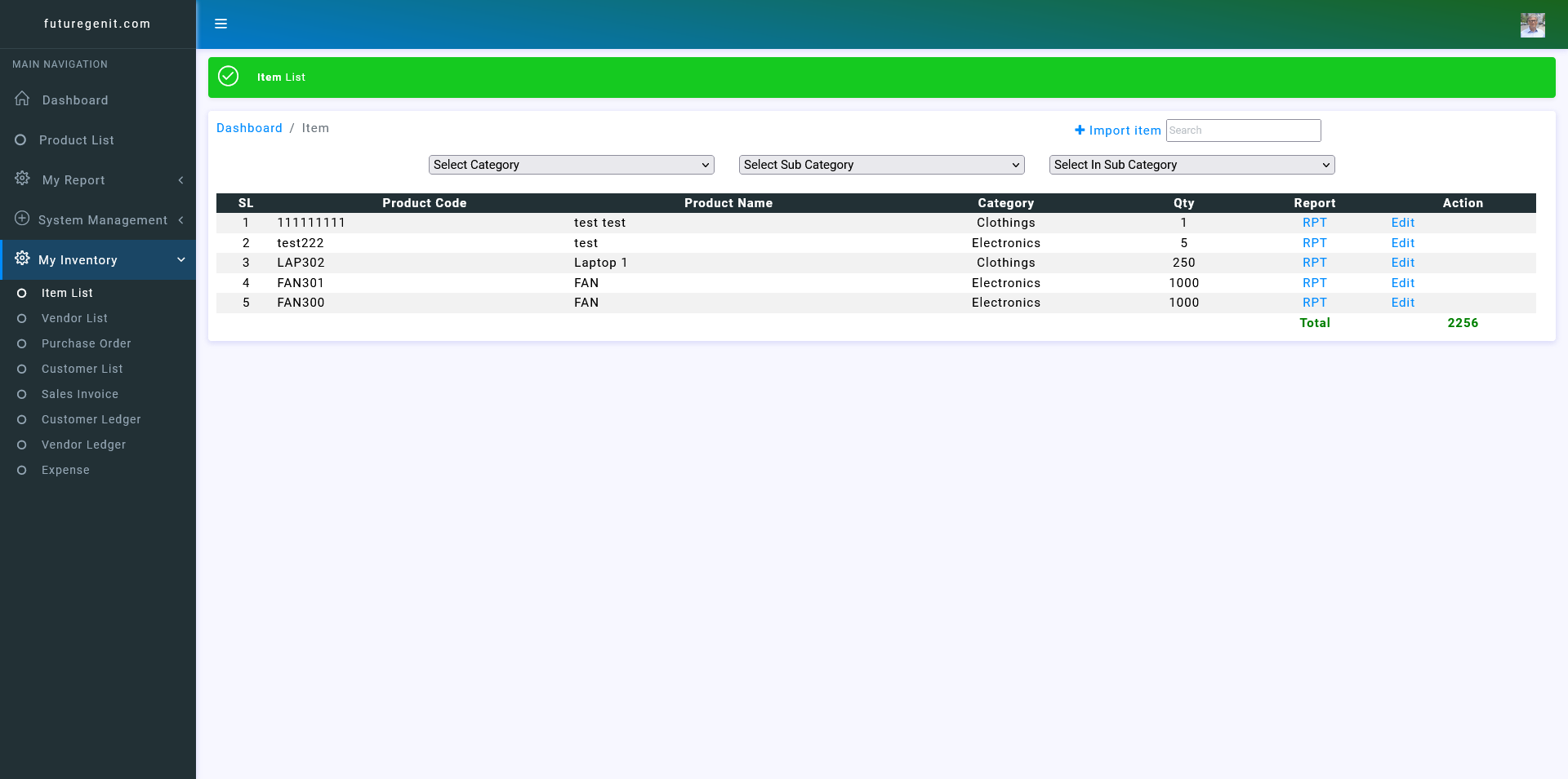 Interactive Dashboard, Company Setting, Create User Role, Create User, Create Company, Create Item, Create Vendor, Create Purchase Invoice, Create Customer, Create Sales Invoice, Create Devid Account Type, Create Credit Account Type, Create Bank Account, Create Expense, User List, User Role List, Company List, Item List, Vendor List, Purchase Invoice List, Customer List, Sales Invoice List, Item List, Devid Account List, Credit Account List, Bank List, Expense List, Profit & Loss Reports, more.....