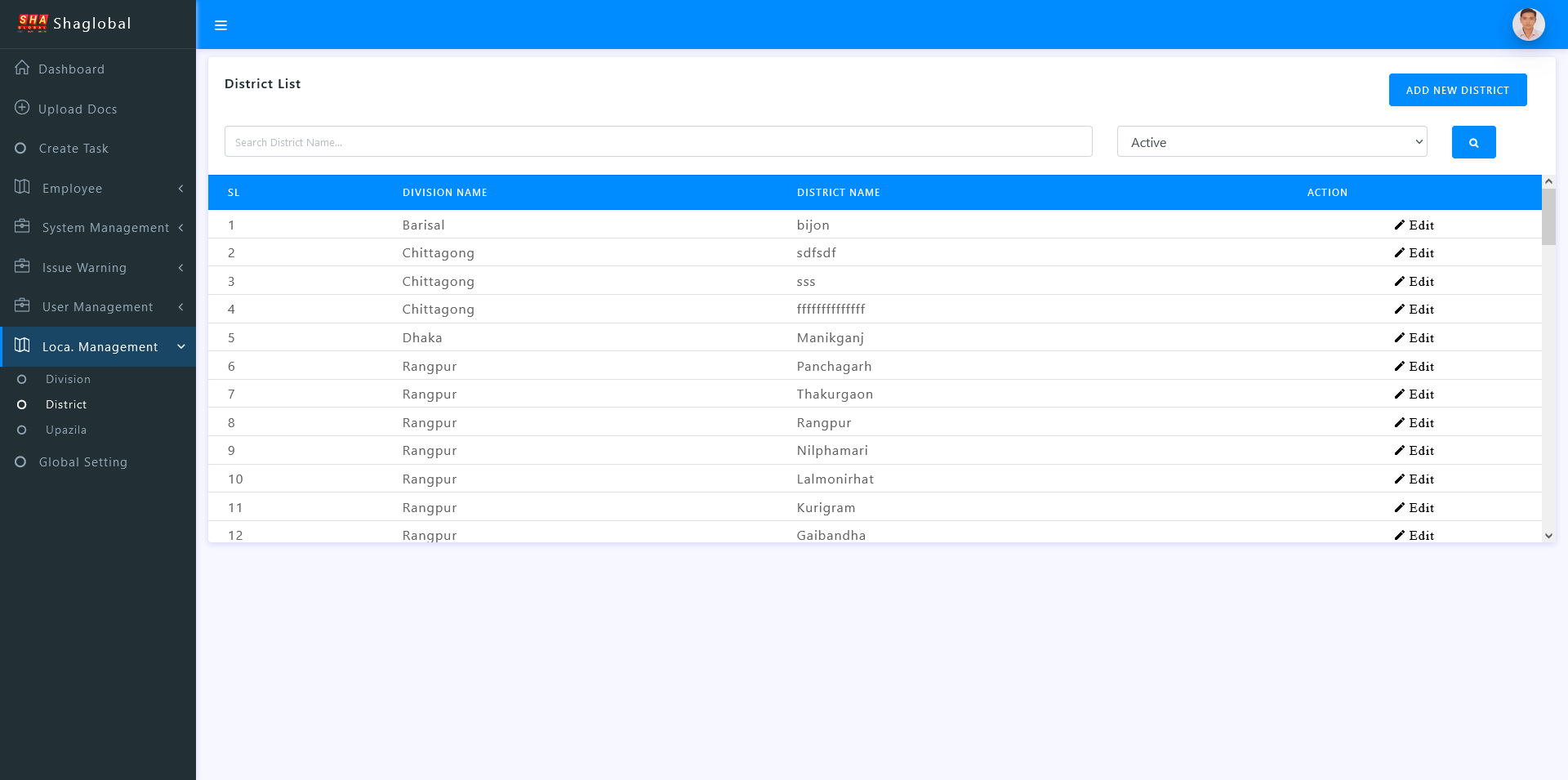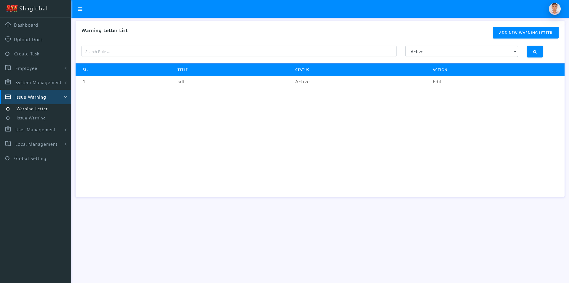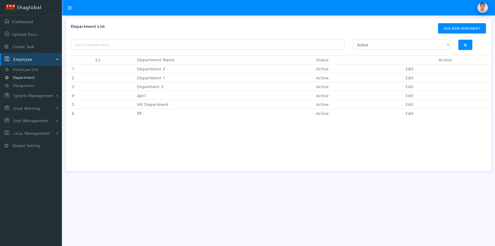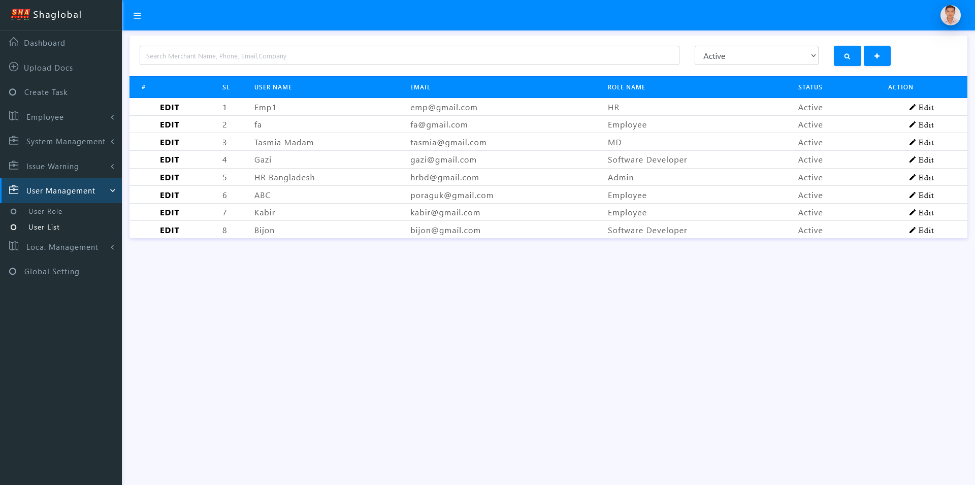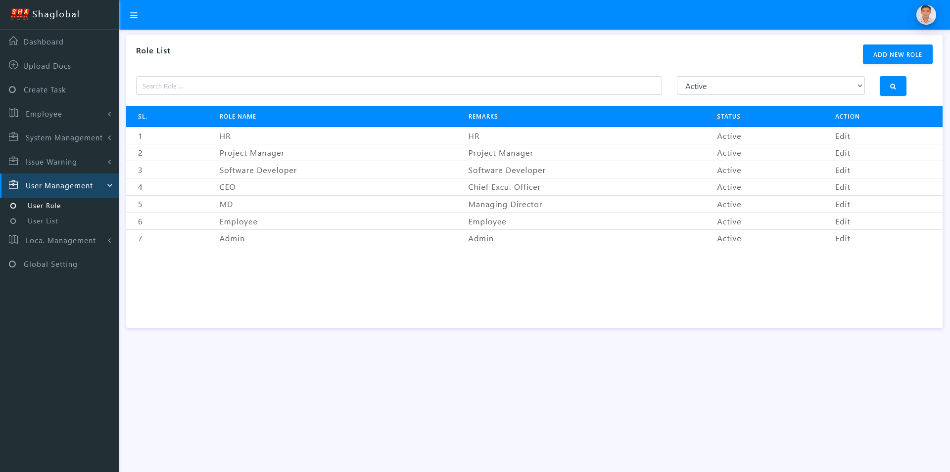 Interactive Dashboard , Employee List, Create Employee, Department List ,Designation List ,Project List, Create Project ,Create Task ,Task List ,Pending List ,Done Work, Create Project Log report, Upload Docs, Warning Letter, Issue Warning , User Role, User Lis, Global Setting