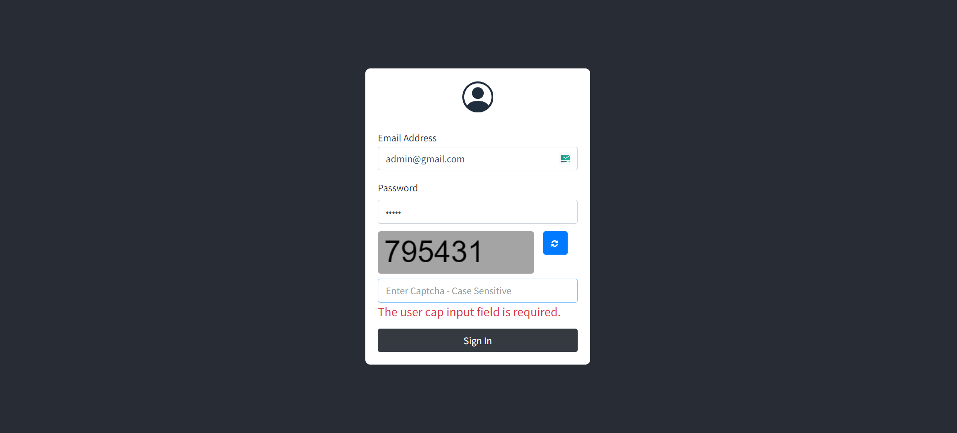 username: admin@gmail.com