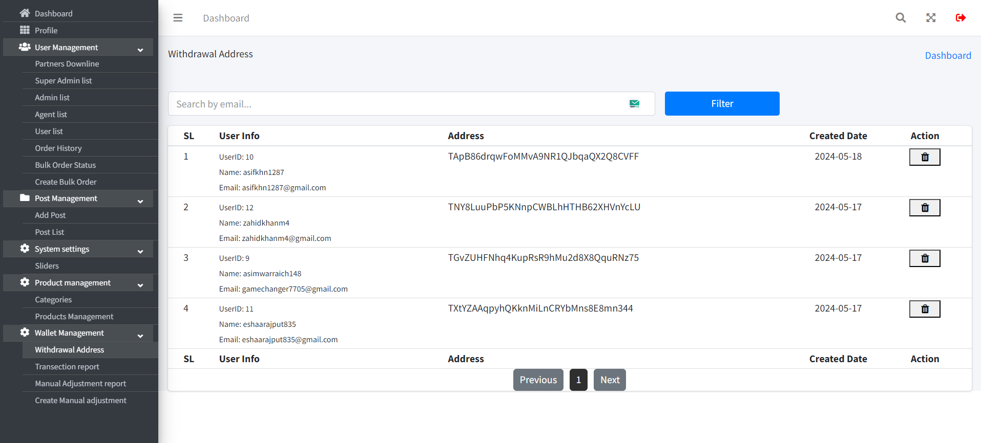 Withdrawal address